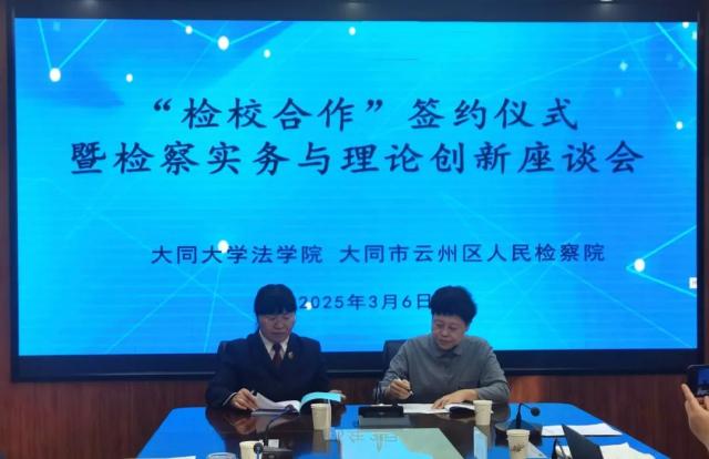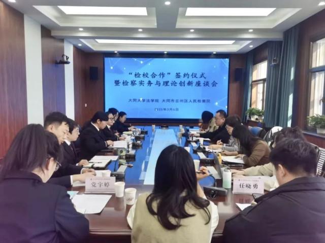 为进一步推动法律学术理论与检察业务深度融合,3月6日,太阳成tyc7111cc集团与云州区检察院在区检察院召开检校合作签约仪式暨检察实务与理论创新座谈会。太阳成tyc7111cc集团杨兴香院长、教工支部书记,教师代表一行8人参加此次座谈会,会议由云州区检察院党组书记、检察长段华主持,区检察院副检察长武美英及青年检察干警参加会议。